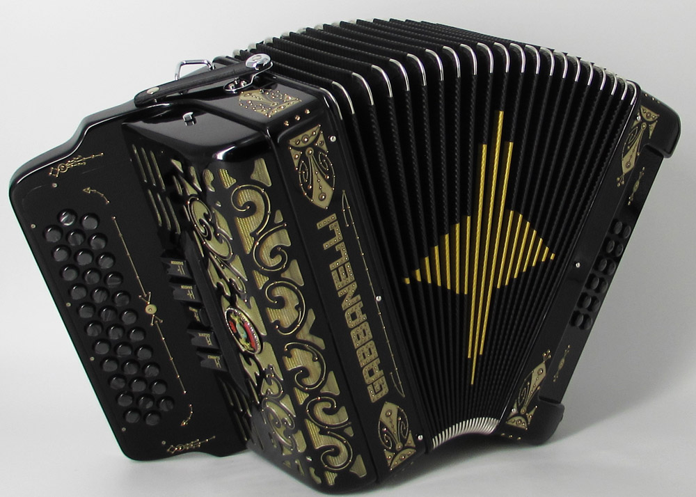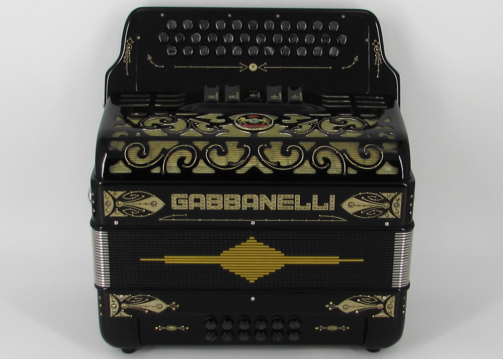 Gabbanelli Accordion in original large size 5 register. It produces deep full sound with 5 different sound effect changes, and is handcrafted from the highest quality materials, featuring the best quality reeds. This accordion is the finest instrument available and is a product of Gabbanelli Accordions’ technical and design expertise, coupled with a continued collaboration since 1961 with our accordionists evolving needs. This accordion masterpiece is the product of Gabbanelli Accordions’ decades of developments alongside only highly trained Italian artisans whom are selected to meet our standards of excellence. The Gabbanelli Model 400-34 Buttons – 5 sound registers is complete with case, straps and warranty. Bass reed blocks are available upon special request and surcharge.