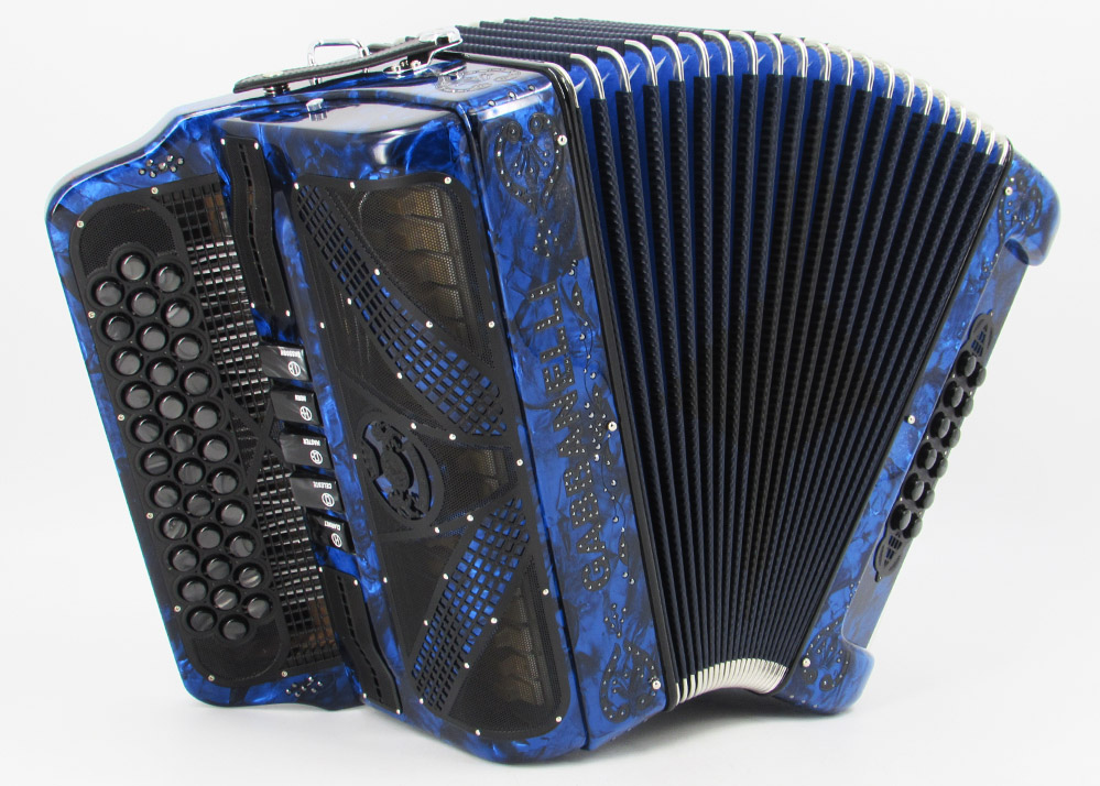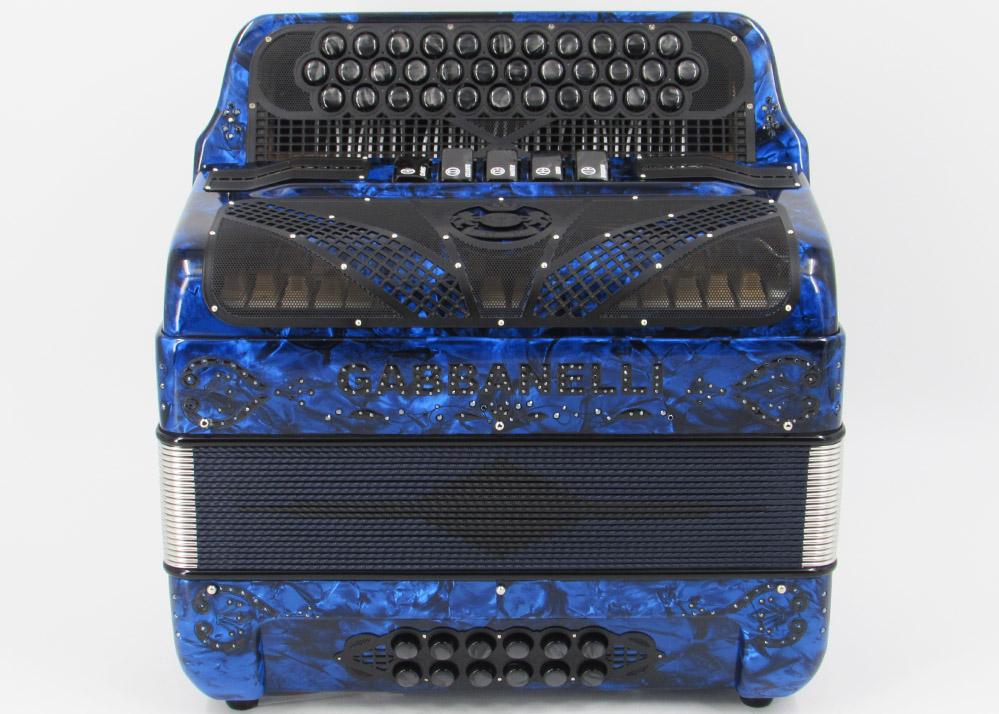 Gabbanelli Accordion in original large size 5 register. It produces deep full sound with 5 different sound effect changes, and is handcrafted from the highest quality materials, featuring the best quality reeds. This accordion is the finest instrument available and is a product of Gabbanelli Accordions technical and design expertise, coupled with a continued collaboration since 1961 with our accordionists evolving needs. This accordion masterpiece is the product of Gabbanelli Accordions decades of developments alongside only highly trained Italian artisans whom are selected to meet our standards of excellence. The Gabbanelli Model 400-34 Buttons 5 sound registers is complete with case, straps and warranty. Bass reed blocks are available upon special request and surcharge.