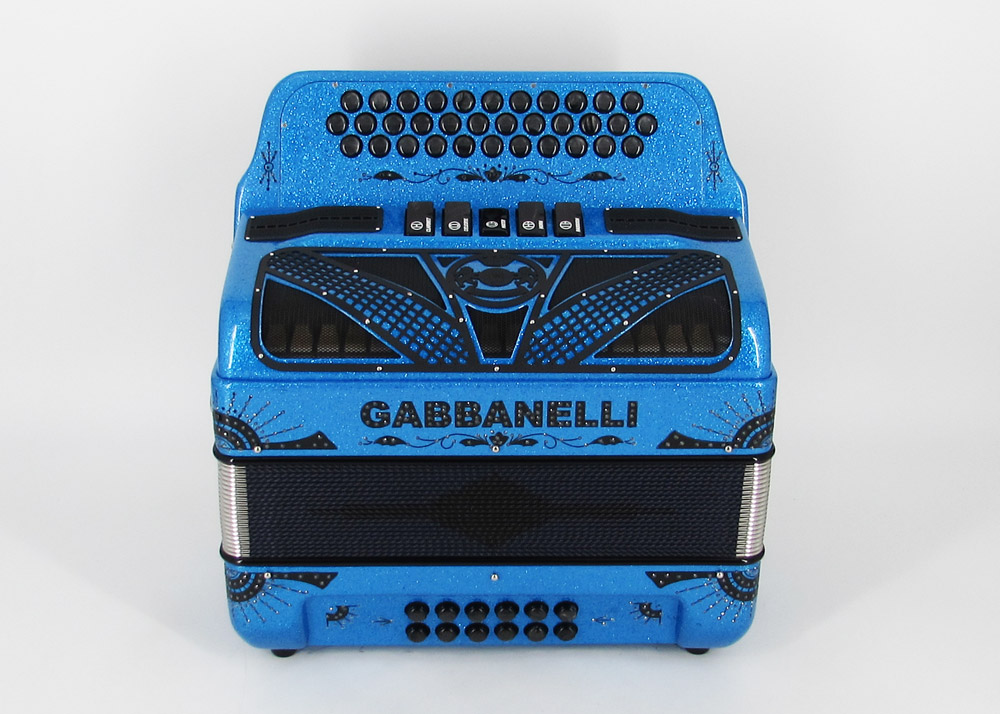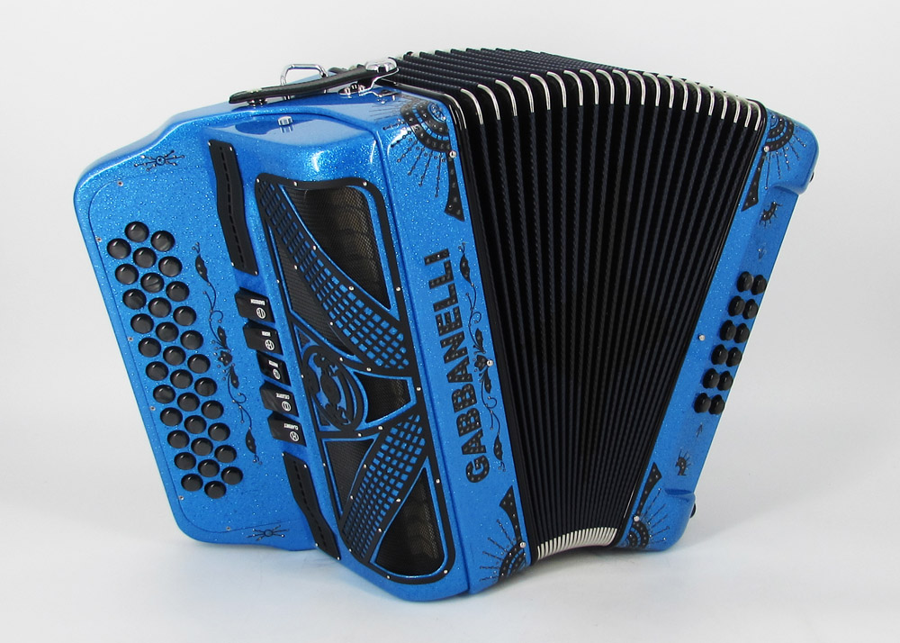 Gabbanelli Accordion in original large size 5 register. It produces deep full sound with 5 different sound effect changes, and is handcrafted from the highest quality materials, featuring the best quality reeds. This accordion is the finest instrument available and is a product of Gabbanelli Accordions technical and design expertise, coupled with a continued collaboration since 1961 with our accordionists evolving needs. This accordion masterpiece is the product of Gabbanelli Accordions decades of developments alongside only highly trained Italian artisans whom are selected to meet our standards of excellence. The Gabbanelli Model 400-34 Buttons 5 sound registers is complete with case, straps and warranty. Bass reed blocks are available upon special request and surcharge.