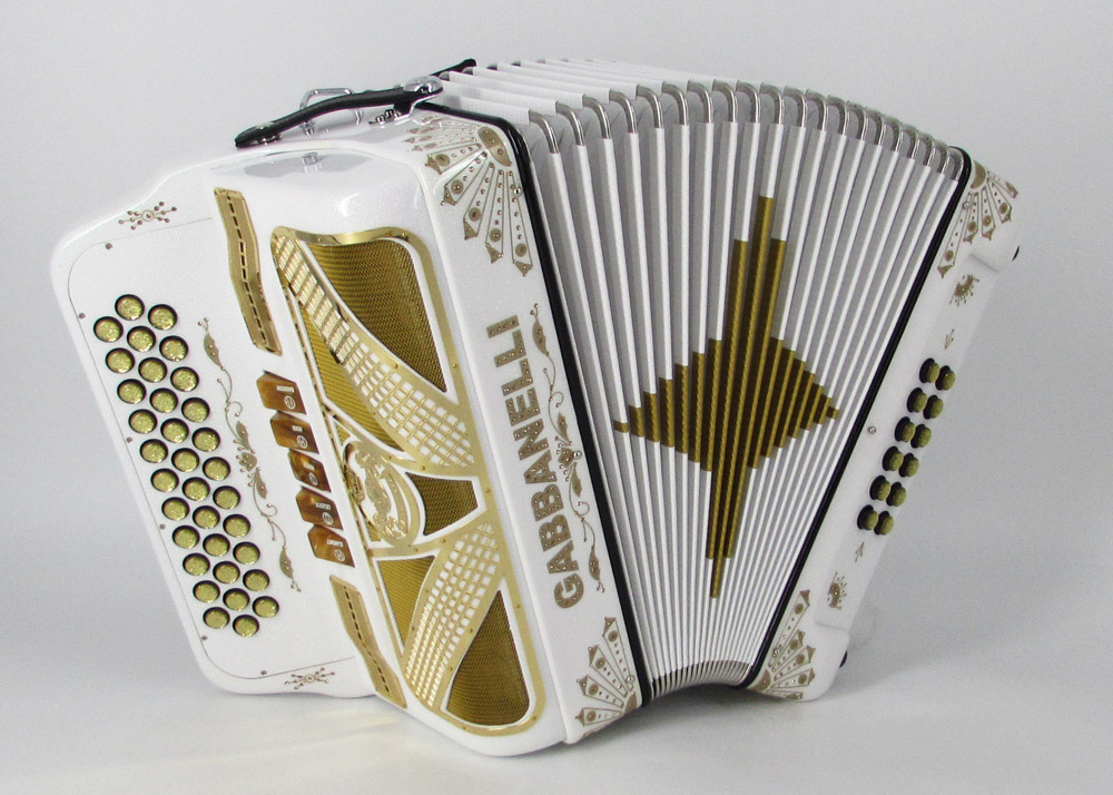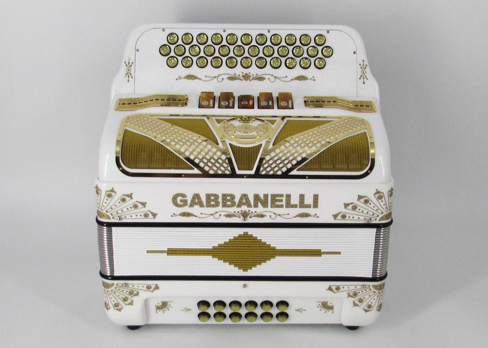 Gabbanelli Accordion in original large size 5 register. It produces deep full sound with 5 different sound effect changes, and is handcrafted from the highest quality materials, featuring the best quality reeds. This accordion is the finest instrument available and is a product of Gabbanelli Accordions technical and design expertise, coupled with a continued collaboration since 1961 with our accordionists evolving needs. This accordion masterpiece is the product of Gabbanelli Accordions decades of developments alongside only highly trained Italian artisans whom are selected to meet our standards of excellence. The Gabbanelli Model 400-34 Buttons 5 sound registers is complete with case, straps and warranty. Bass reed blocks are available upon special request and surcharge.