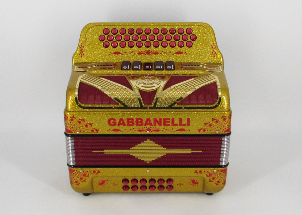 Gabbanelli Accordion in original large size 5 register. It produces deep full sound with 5 different sound effect changes, and is handcrafted from the highest quality materials, featuring the best quality reeds. This accordion is the finest instrument available and is a product of Gabbanelli Accordions’ technical and design expertise, coupled with a continued collaboration since 1961 with our accordionists evolving needs. This accordion masterpiece is the product of Gabbanelli Accordions’ decades of developments alongside only highly trained Italian artisans whom are selected to meet our standards of excellence. The Gabbanelli Model 400-34 Buttons – 5 sound registers is complete with case, straps and warranty. Bass reed blocks are available upon special request and surcharge.
