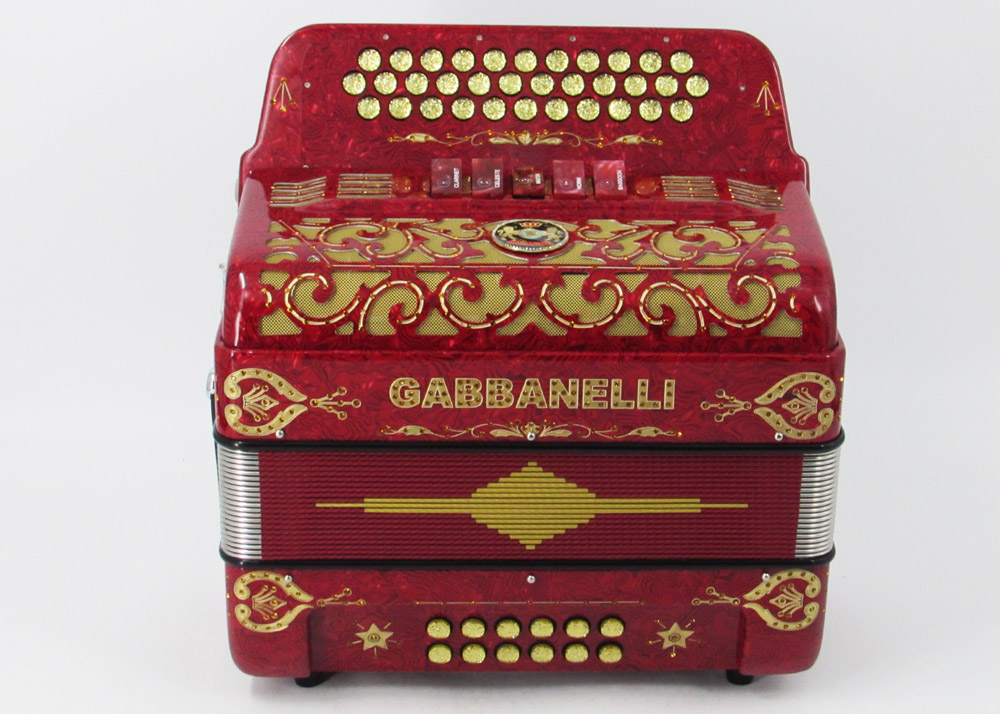 Gabbanelli Accordion in original large size 5 register. It produces deep full sound with 5 different sound effect changes, and is handcrafted from the highest quality materials, featuring the best quality reeds. This accordion is the finest instrument available and is a product of Gabbanelli Accordions’ technical and design expertise, coupled with a continued collaboration since 1961 with our accordionists evolving needs. This accordion masterpiece is the product of Gabbanelli Accordions’ decades of developments alongside only highly trained Italian artisans whom are selected to meet our standards of excellence. The Gabbanelli Model 400-34 Buttons – 5 sound registers is complete with case, straps and warranty. Bass reed blocks are available upon special request and surcharge.