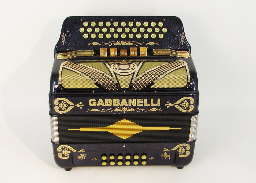 Gabbanelli Accordion in original large size 5 register. It produces deep full sound with 5 different sound effect changes, and is handcrafted from the highest quality materials, featuring the best quality reeds. This accordion is the finest instrument available and is a product of Gabbanelli Accordions’ technical and design expertise, coupled with a continued collaboration since 1961 with our accordionists evolving needs. This accordion masterpiece is the product of Gabbanelli Accordions’ decades of developments alongside only highly trained Italian artisans whom are selected to meet our standards of excellence. The Gabbanelli Model 400-34 Buttons – 5 sound registers is complete with case, straps and warranty. Bass reed blocks are available upon special request and surcharge.
