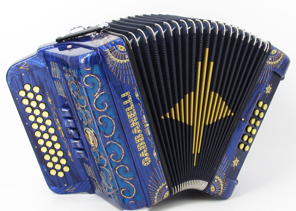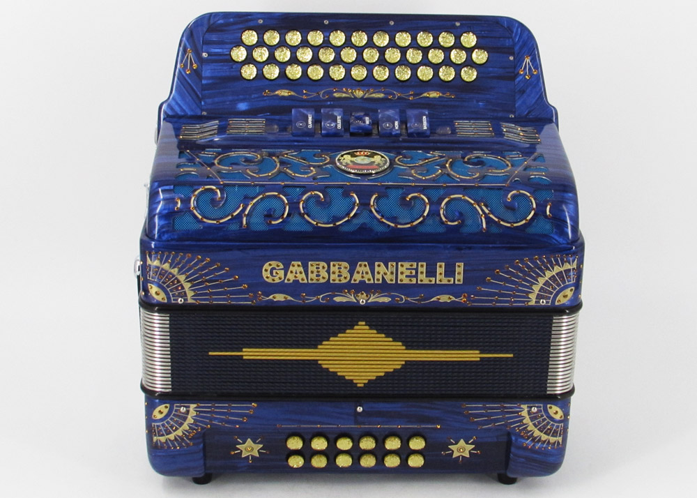 Gabbanelli Accordion in original large size 5 register. It produces deep full sound with 5 different sound effect changes, and is handcrafted from the highest quality materials, featuring the best quality reeds. This accordion is the finest instrument available and is a product of Gabbanelli Accordions’ technical and design expertise, coupled with a continued collaboration since 1961 with our accordionists evolving needs. This accordion masterpiece is the product of Gabbanelli Accordions’ decades of developments alongside only highly trained Italian artisans whom are selected to meet our standards of excellence. The Gabbanelli Model 400-34 Buttons – 5 sound registers is complete with case, straps and warranty. Bass reed blocks are available upon special request and surcharge.