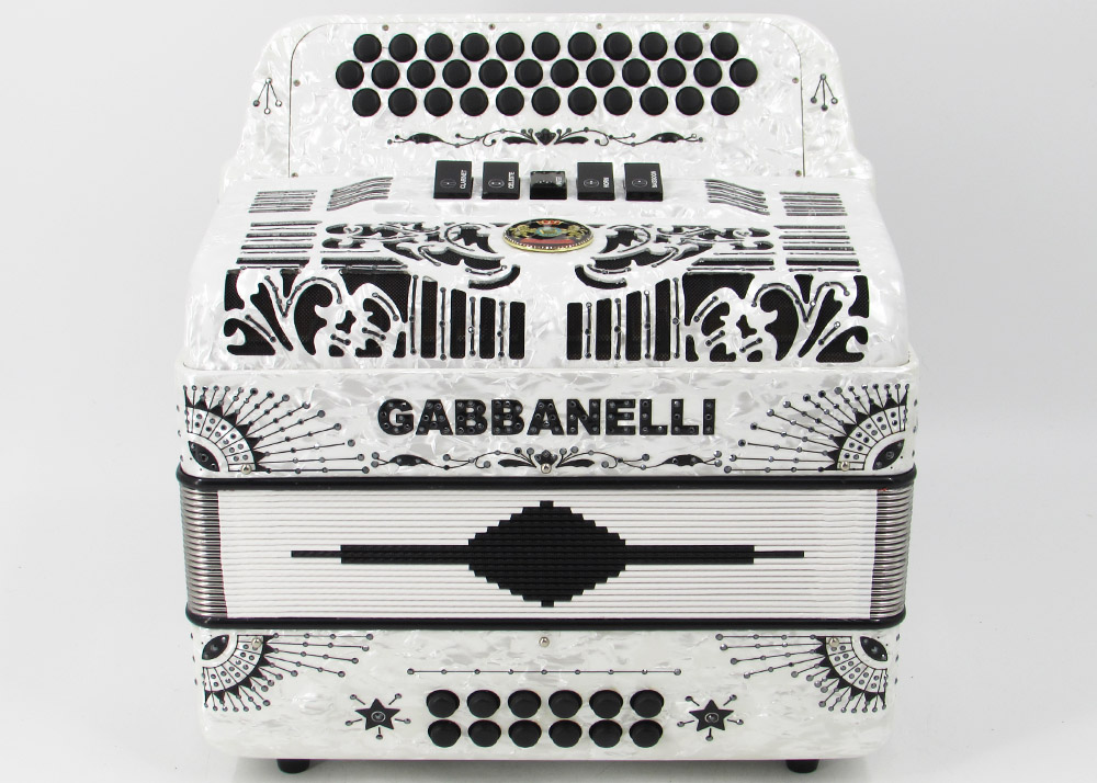 Gabbanelli Accordion in original large size 5 register. It produces deep full sound with 5 different sound effect changes, and is handcrafted from the highest quality materials, featuring the best quality reeds. This accordion is the finest instrument available and is a product of Gabbanelli Accordions technical and design expertise, coupled with a continued collaboration since 1961 with our accordionists evolving needs. This accordion masterpiece is the product of Gabbanelli Accordions decades of developments alongside only highly trained Italian artisans whom are selected to meet our standards of excellence. The Gabbanelli Model 400-34 Buttons 5 sound registers is complete with case, straps and warranty. Bass reed blocks are available upon special request and surcharge.