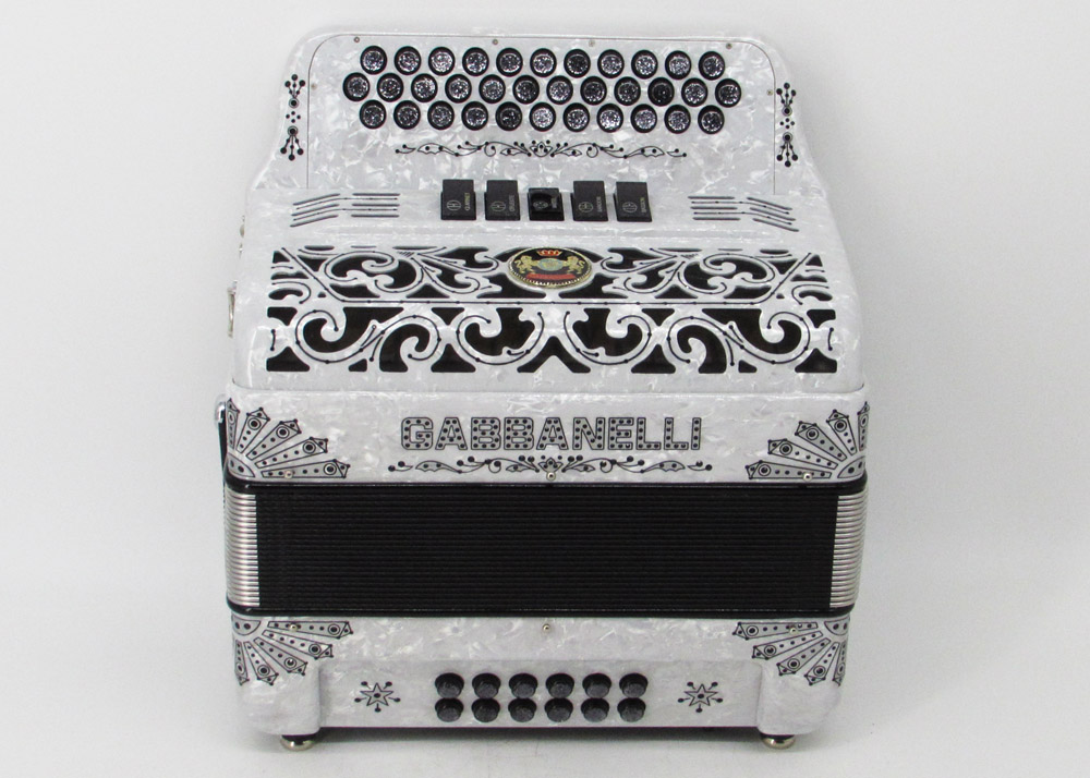 Gabbanelli Accordion in original large size 5 register. It produces deep full sound with 5 different sound effect changes, and is handcrafted from the highest quality materials, featuring the best quality reeds. This accordion is the finest instrument available and is a product of Gabbanelli Accordions’ technical and design expertise, coupled with a continued collaboration since 1961 with our accordionists evolving needs. This accordion masterpiece is the product of Gabbanelli Accordions’ decades of developments alongside only highly trained Italian artisans whom are selected to meet our standards of excellence. The Gabbanelli Model 400-34 Buttons – 5 sound registers is complete with case, straps and warranty. Bass reed blocks are available upon special request and surcharge.