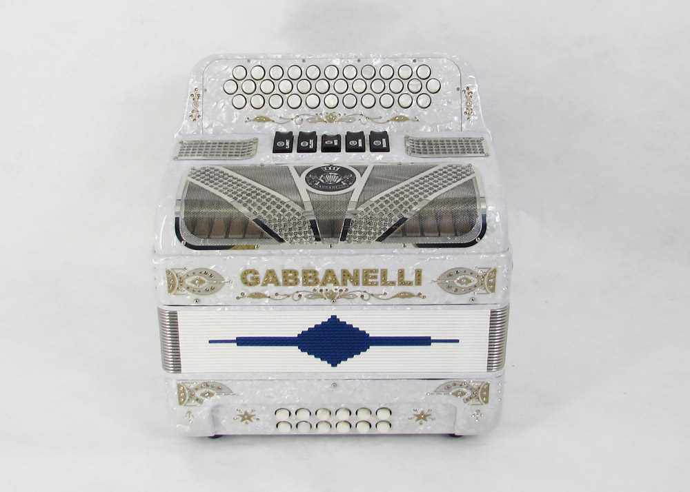 Featuring the best quality reeds, Gabbanelli’s signature 5 register accordion in a compact size produces deep sound and is handcrafted from the highest quality materials. Model 400, compact body- 34 Buttons – 5 sound registers, bass reed blocks are available upon special request. Our Gabbanelli accordions are created from classic Italian artisan’s techniques to produce the best quality instrument that will last for years to come. Complete with case, straps and warranty. Bass reed blocks are available upon special request and surcharge.