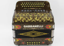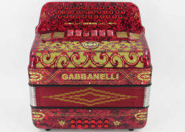 This unique 5 register Gabbanelli model features 4 rows, 46 buttons and 5 sound registers with loud deep tone. Designed for 3 row players who want to extend tonal range utilizing a fourth row of buttons. Precision made from the highest quality materials our Gabbanelli Accordions are created from classic Italian artisans techniques to produce the finest quality instrument that will last for years to come. Model 465- 4 Row, 5 sound Registers – 3 reeds in Master. Complete with case, straps and warranty. Aprox. Accordion weight: 15.16lbs. Approx.Dimensions 8 5/8 x 14 1/2 x 15 in.