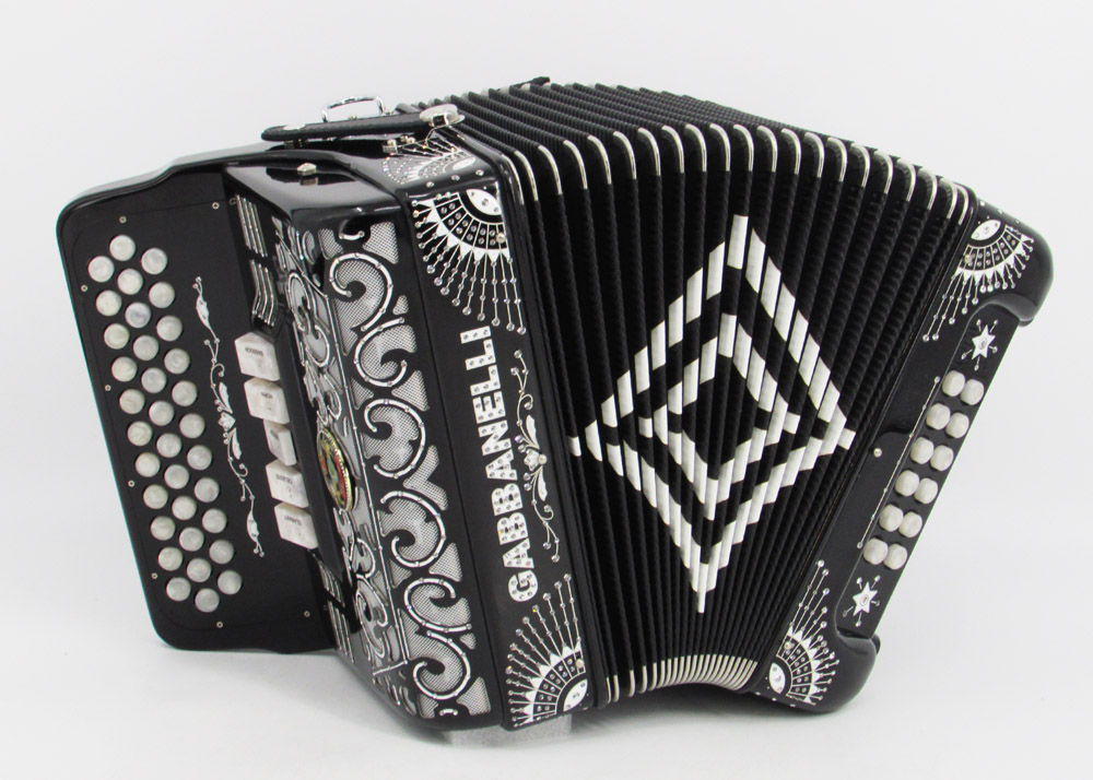 Gabbanelli Accordion in supper compact size 5 register. It produces deep full sound with 5 different sound effect changes, and is handcrafted from the highest quality materials, featuring the best quality reeds. This accordion is the finest instrument available and is a product of Gabbanelli Accordions’ technical and design expertise, coupled with a continued collaboration since 1961 with our accordionists evolving needs. This accordion masterpiece is the product of Gabbanelli Accordions’ decades of developments alongside only highly trained Italian artisans who are selected to meet our standards of excellence. The Gabbanelli Model 400-34 Buttons – 5 sound registers is complete with case, straps and warranty. Bass reed blocks are available upon special request and surcharge.