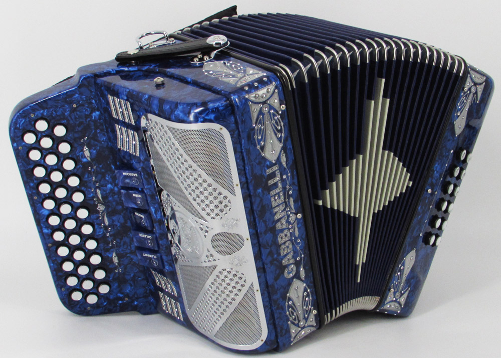 Gabbanelli Accordion in supper compact size 5 register. It produces deep full sound with 5 different sound effect changes, and is handcrafted from the highest quality materials, featuring the best quality reeds. This accordion is the finest instrument available and is a product of Gabbanelli Accordions’ technical and design expertise, coupled with a continued collaboration since 1961 with our accordionists evolving needs. This accordion masterpiece is the product of Gabbanelli Accordions’ decades of developments alongside only highly trained Italian artisans who are selected to meet our standards of excellence. The Gabbanelli Model 400-34 Buttons – 5 sound registers is complete with case, straps and warranty. Bass reed blocks are available upon special request and surcharge.