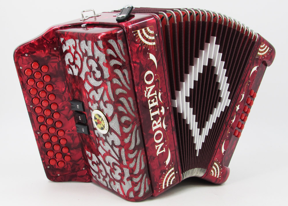 Norteño Brand Accordion 3 Registers Red/White Sun