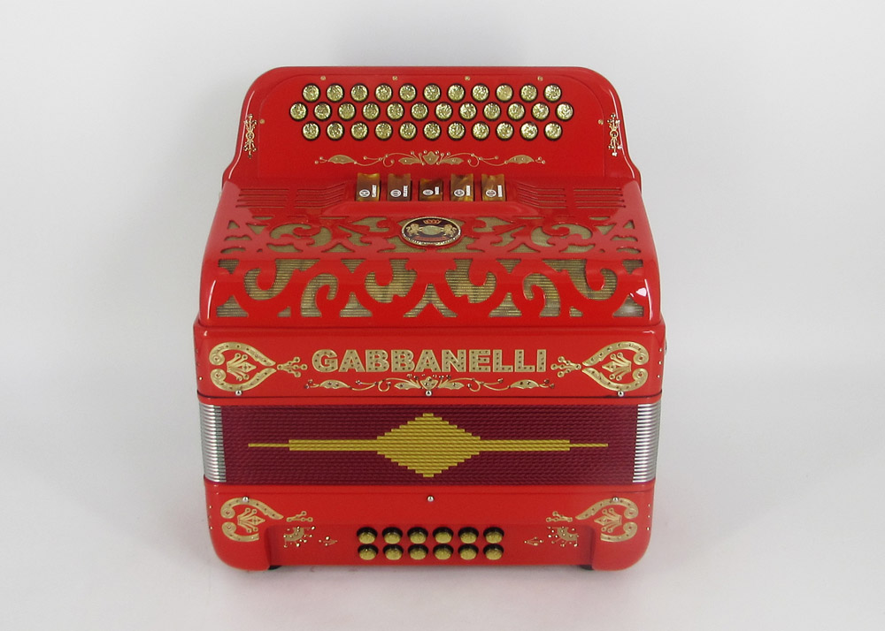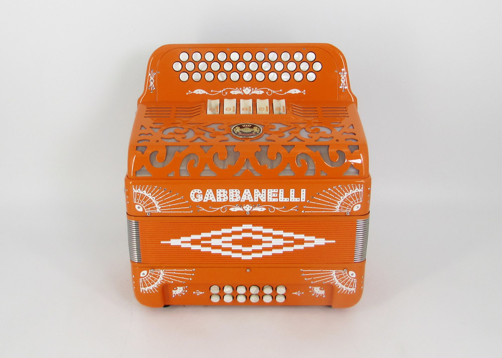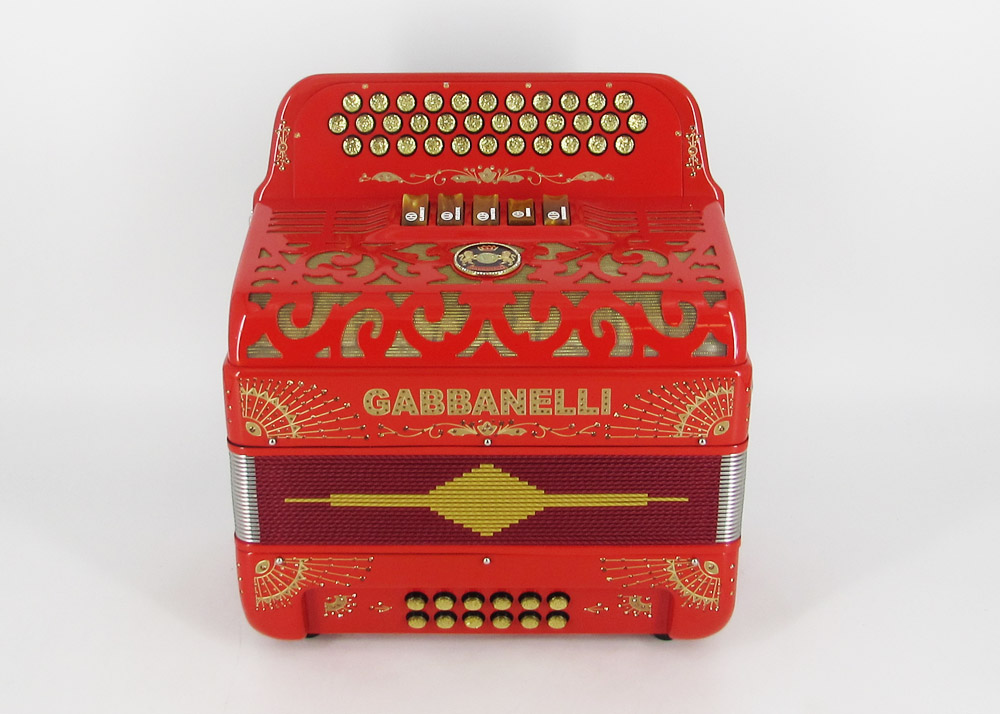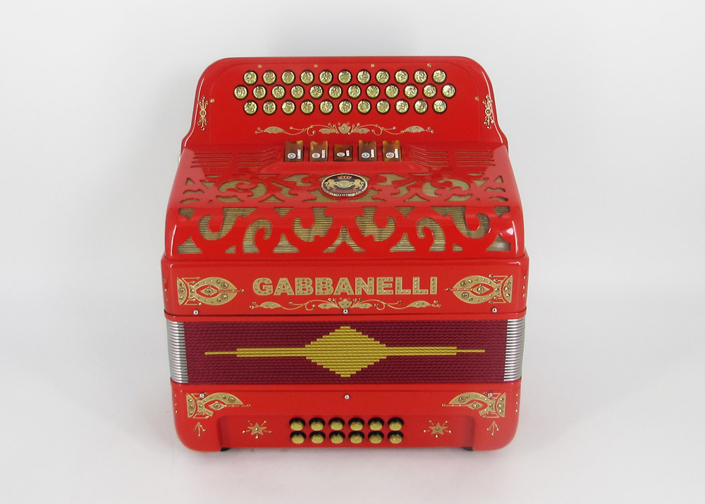 Model 400- 34 Buttons – 5 sound registers, Original size. Bass reed blocks are available upon special request and surcharge.