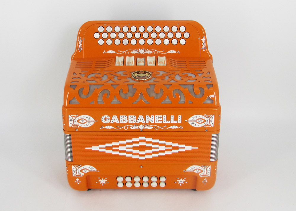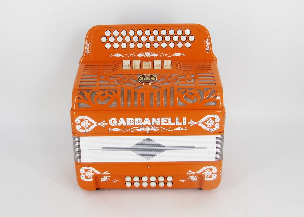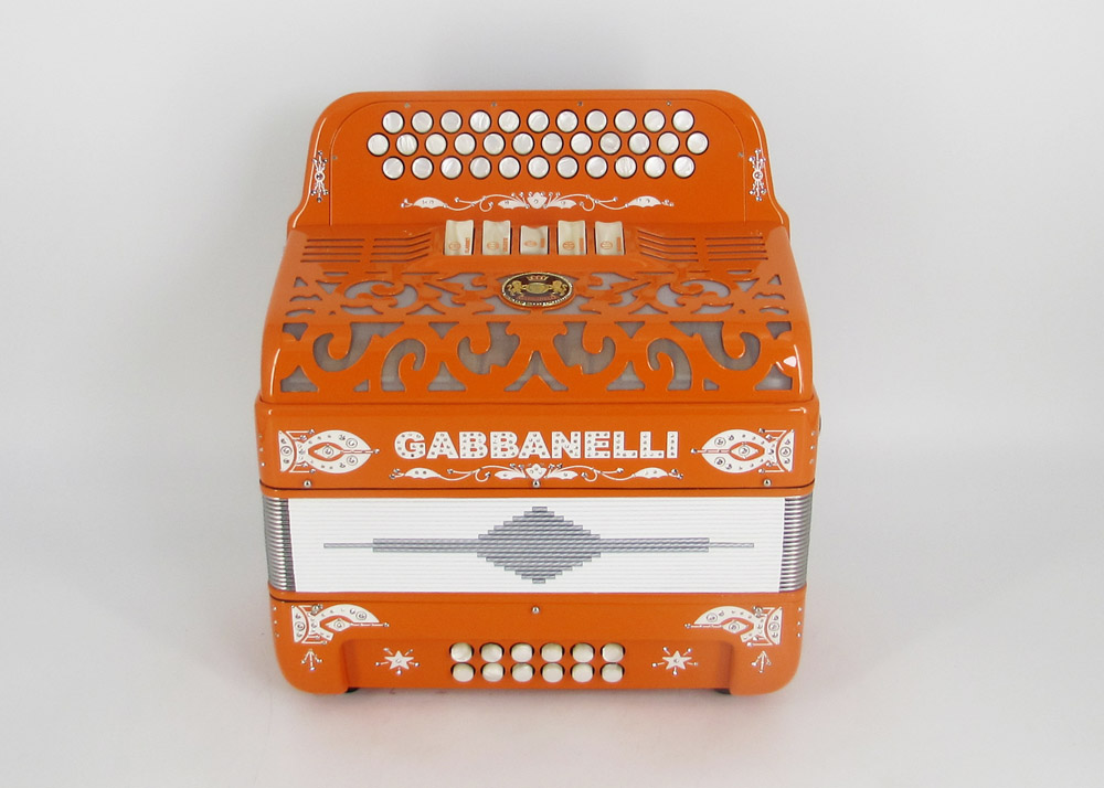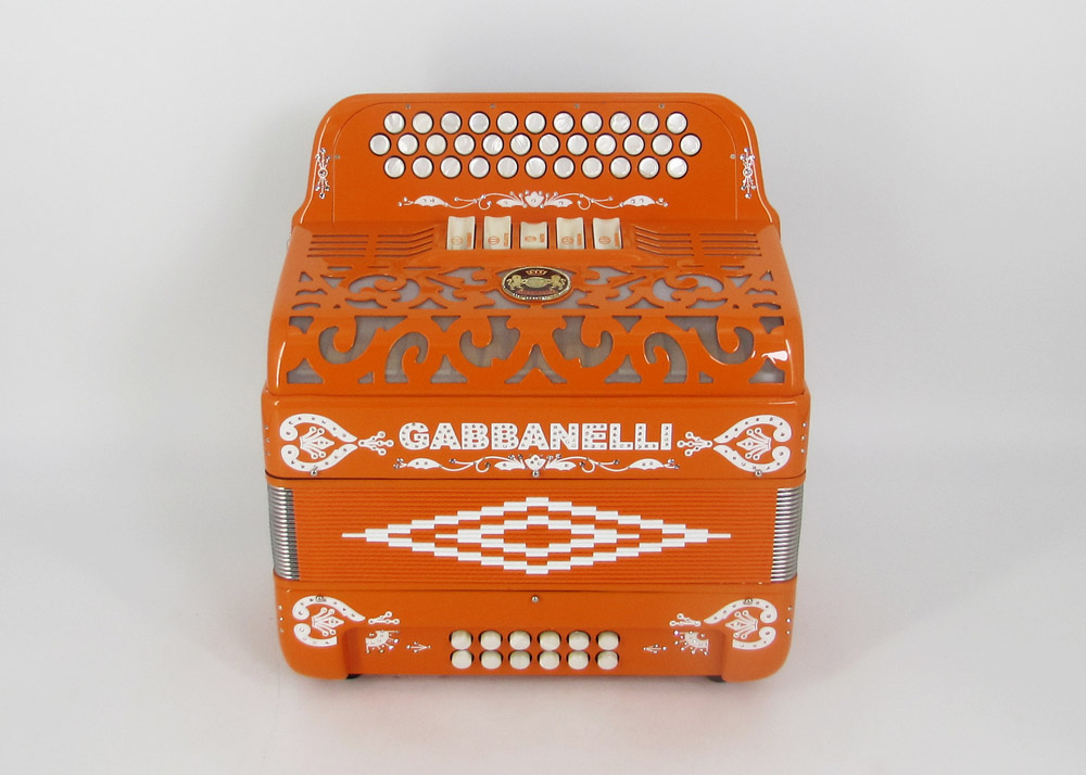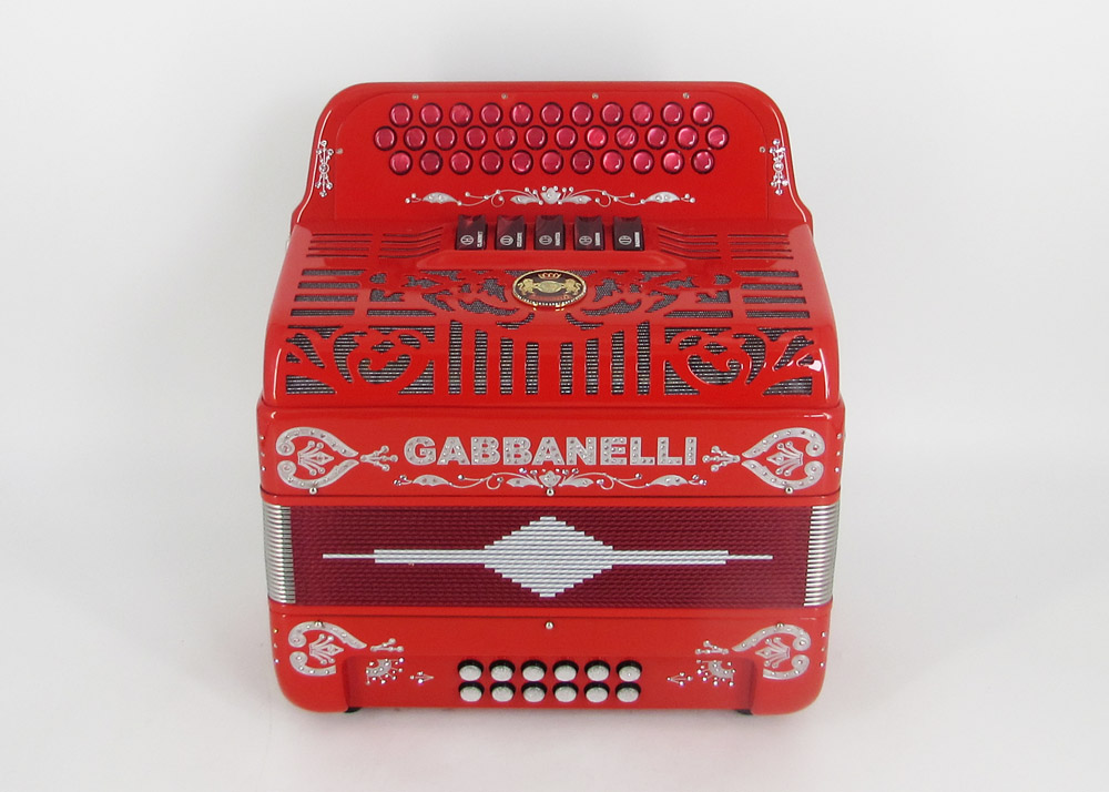 Model 400- 34 Buttons – 5 sound registers, Original size. Bass reed blocks are available upon special request and surcharge.