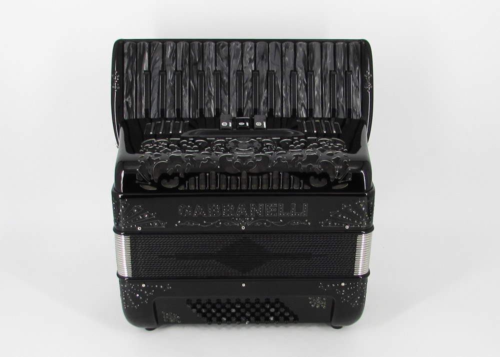 Model 900- 34 Buttons, 9 sound registers 4 reed Musette. Bass reed blocks are available upon special request and surcharge.