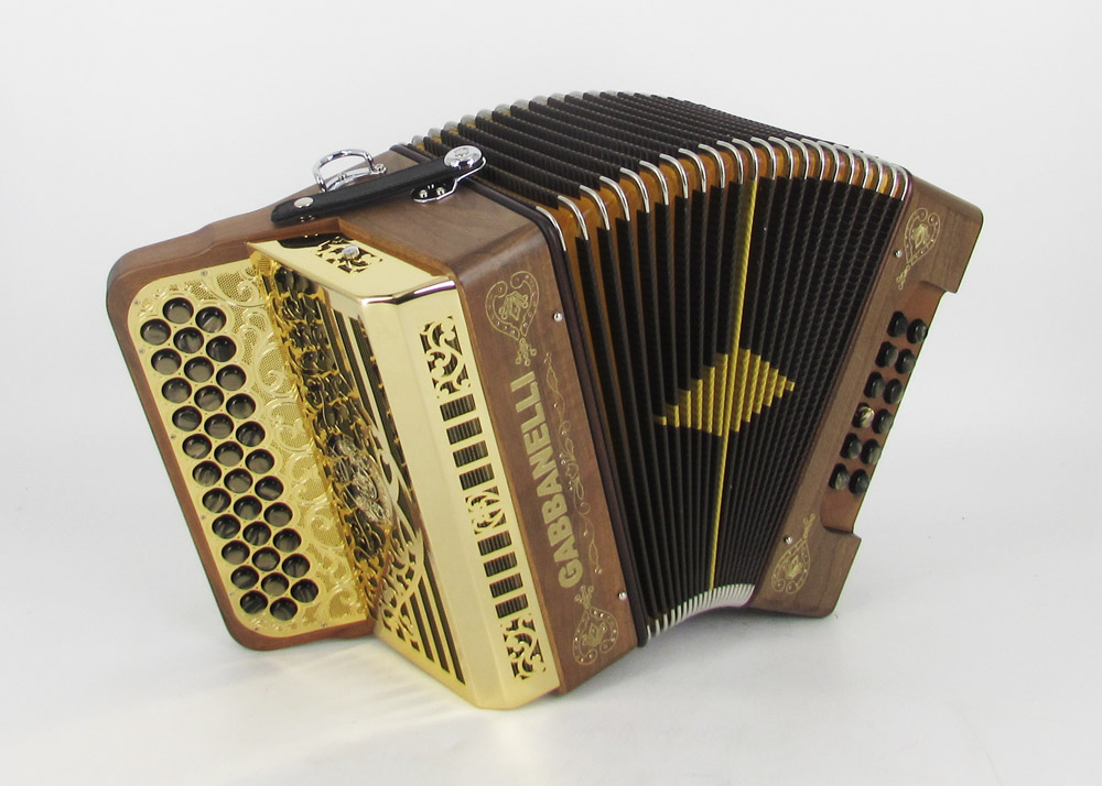 Este acordeón Gabbanelli supercompacto y ligero hecho de madera solida de nogal italiano cuenta con un mecanismo de acción suave y sonido potente, con 34 botones. Nuestros acordeones Gabbanelli son elaborados bajo técnicas clásicas artesanales italianas, con el objetivo de producir instrumentos de la más alta calidad y cuya durabilidad pueda prolongarse para muchos años. Modelo M101Madera Solida-34 botones-Edición Madera de Lujo. Incluye estuche, correas, y garantía. Bajos disponibles sobre pedido.
