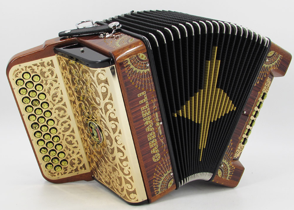 Este acordeón es el más compacto y ligero hecho de madera Italiana, acción ligera y sonido fuerte con 34 botones. Los acordeones Gabbanelli que tenemos actualmente en nuestro catálogo son los instrumentos más refinados en el mercado y son el resultado de nuestro gran conocimiento y colaboración continua desde 1961 con los mejores acordeonistas. Esta obra maestra es producto del desarrollo de Acordeones Gabbanelli a lo largo de varias décadas y de un trabajo artesanal hecho por expertos italianos que han sido seleccionados para cumplir nuestros parámetros de excelencia. Modelo M101 Madera- 34 Botones – Edición de Lujo de Madera. Incluye estuche, correas y garantía.
