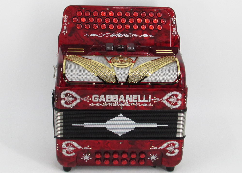 Acordeón Gabbanelli compacto y ligero de 3 registros y 34 Botones. Altamente preferido por su sonido poderoso, natural entonación y bajo peso en un diseño estilizado. Ensamblado a mano en Italia, con los materiales de la más alta calidad. Gabbanelli Modelo Compacto 103- 34 Botones – 3 registros de sonido. Disponible también con voces de bajos, mediante pedido especial. Incluye estuche, correas y garantía.