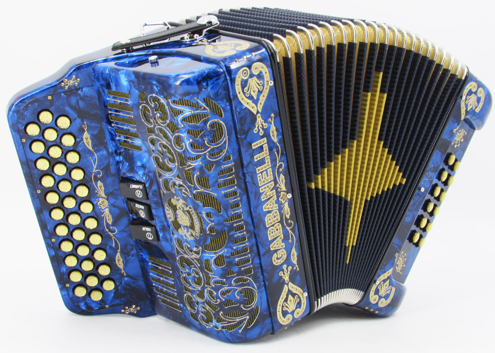 Acordeón Gabbanelli compacto y ligero de 3 registros y 34 Botones. Altamente preferido por su sonido poderoso, natural entonación y bajo peso en un diseño estilizado. Ensamblado a mano en Italia, con los materiales de la más alta calidad. Gabbanelli Modelo Compacto 103- 34 Botones – 3 registros de sonido. Disponible también con voces de bajos, mediante pedido especial. Incluye estuche, correas y garantía.
