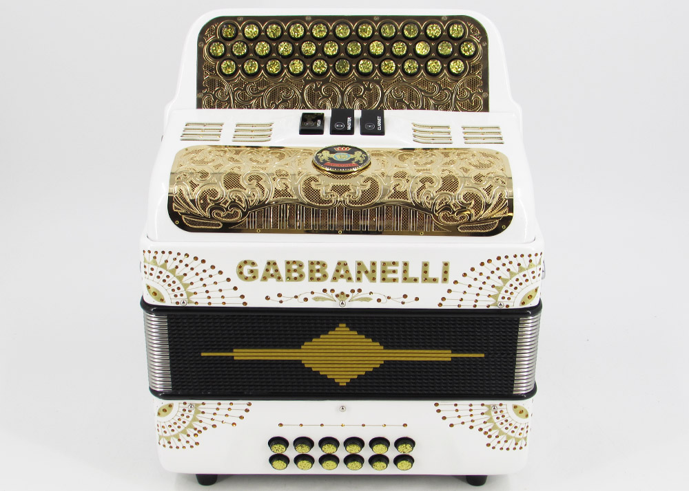 Acordeón Gabbanelli compacto y ligero de 3 registros y 34 Botones. Altamente preferido por su sonido poderoso, natural entonación y bajo peso en un diseño estilizado. Ensamblado a mano en Italia, con los materiales de la más alta calidad. Gabbanelli Modelo Compacto 103- 34 Botones – 3 registros de sonido. Disponible también con voces de bajos, mediante pedido especial. Incluye estuche, correas y garantía.