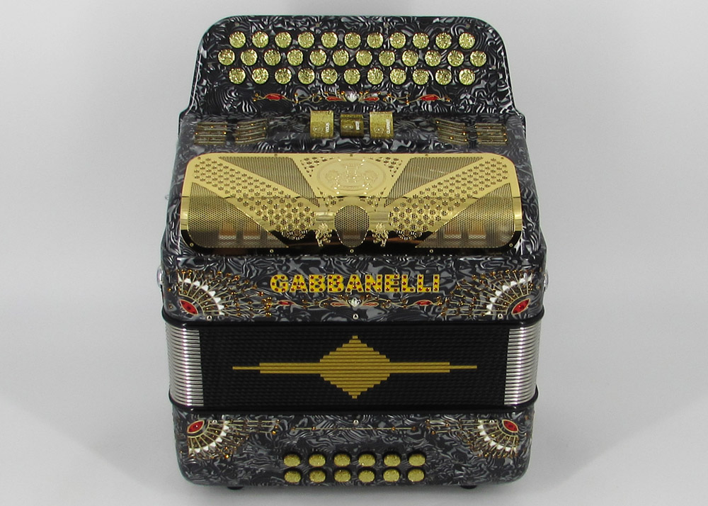 Acordeón Gabbanelli compacto y ligero de 3 registros y 34 Botones. Altamente preferido por su sonido poderoso, natural entonación y bajo peso en un diseño estilizado. Ensamblado a mano en Italia, con los materiales de la más alta calidad. Gabbanelli Modelo Compacto 103- 34 Botones – 3 registros de sonido. Disponible también con voces de bajos, mediante pedido especial. Incluye estuche, correas y garantía.