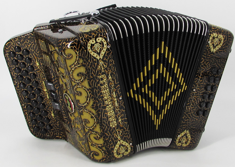 Acordeón Gabbanelli compacto y ligero de 3 registros y 34 Botones. Altamente preferido por su sonido poderoso, natural entonación y bajo peso en un diseño estilizado. Ensamblado a mano en Italia, con los materiales de la más alta calidad. Gabbanelli Modelo Compacto 103- 34 Botones – 3 registros de sonido. Disponible también con voces de bajos, mediante pedido especial. Incluye estuche, correas y garantía.