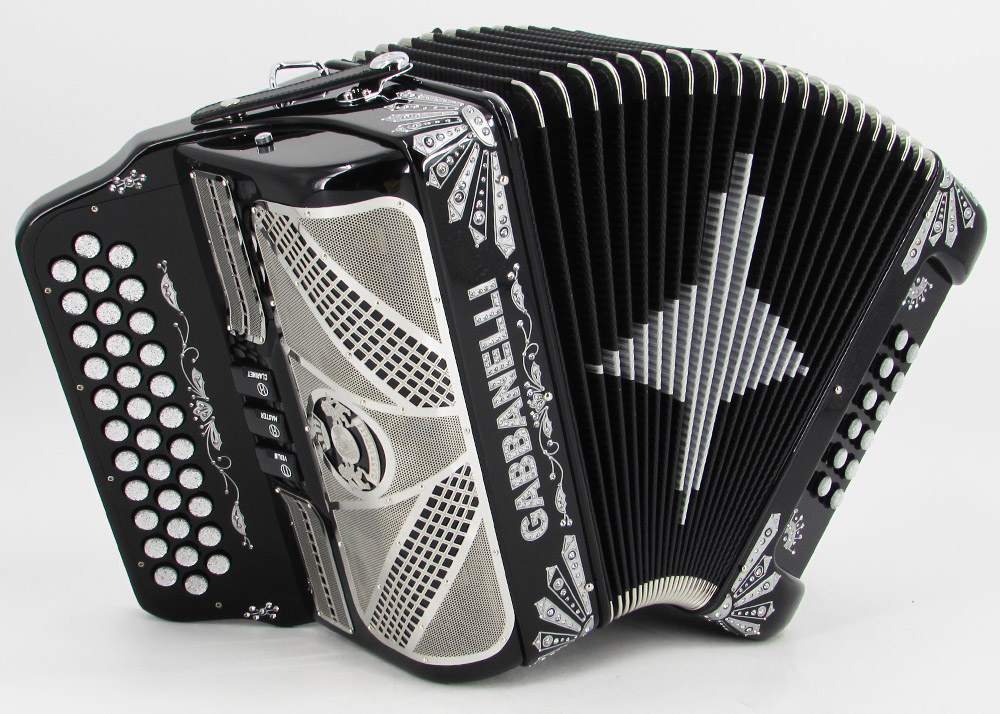 Acordeón Gabbanelli compacto y ligero de 3 registros y 34 Botones. Altamente preferido por su sonido poderoso, natural entonación y bajo peso en un diseño estilizado. Ensamblado a mano en Italia, con los materiales de la más alta calidad. Gabbanelli Modelo Compacto 103- 34 Botones – 3 registros de sonido. Disponible también con voces de bajos, mediante pedido especial. Incluye estuche, correas y garantía.