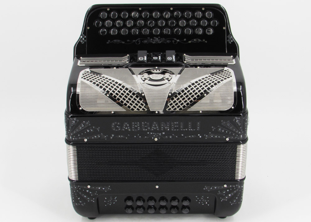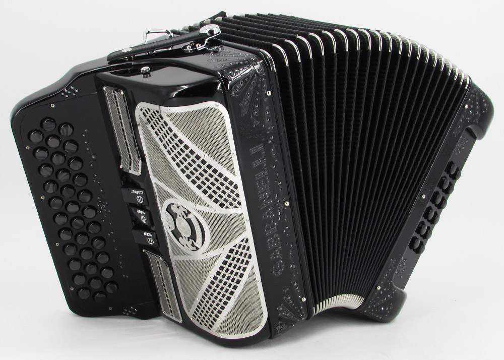 Acordeón Gabbanelli compacto y ligero de 3 registros y 34 Botones. Altamente preferido por su sonido poderoso, natural entonación y bajo peso en un diseño estilizado. Ensamblado a mano en Italia, con los materiales de la más alta calidad. Gabbanelli Modelo Compacto 103- 34 Botones – 3 registros de sonido. Disponible también con voces de bajos, mediante pedido especial. Incluye estuche, correas y garantía.