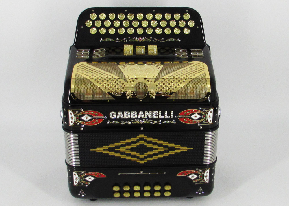 Acordeón Gabbanelli compacto y ligero de 3 registros y 34 Botones. Altamente preferido por su sonido poderoso, natural entonación y bajo peso en un diseño estilizado. Ensamblado a mano en Italia, con los materiales de la más alta calidad. Gabbanelli Modelo Compacto 103- 34 Botones – 3 registros de sonido. Disponible también con voces de bajos, mediante pedido especial. Incluye estuche, correas y garantía.