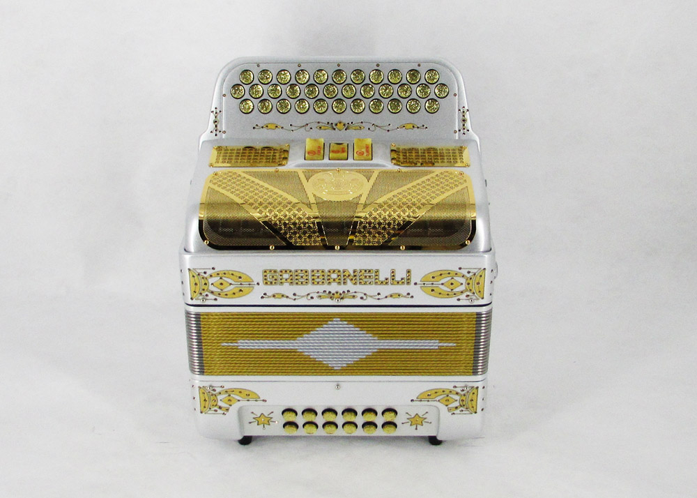 Acordeón Gabbanelli compacto y ligero de 3 registros y 34 Botones. Altamente preferido por su sonido poderoso, natural entonación y bajo peso en un diseño estilizado. Ensamblado a mano en Italia, con los materiales de la más alta calidad. Gabbanelli Modelo Compacto 103- 34 Botones – 3 registros de sonido. Disponible por un costo adicional. Incluye estuche, correas y garantía.