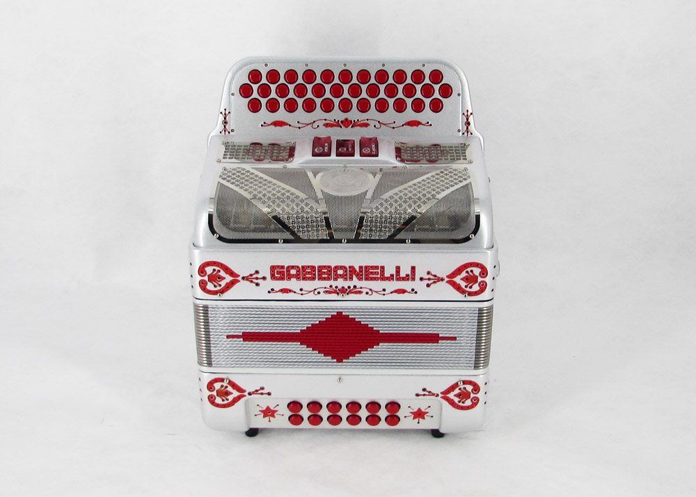 Acordeón Gabbanelli compacto y ligero de 3 registros y 34 Botones. Altamente preferido por su sonido poderoso, natural entonación y bajo peso en un diseño estilizado. Ensamblado a mano en Italia, con los materiales de la más alta calidad. Gabbanelli Modelo Compacto 103- 34 Botones – 3 registros de sonido. Disponible por un costo adicional.  Incluye estuche, correas y garantía.