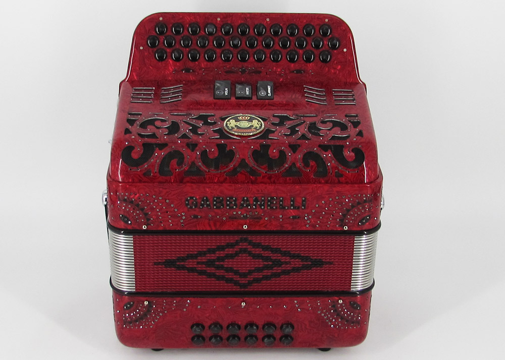 Acordeón Gabbanelli compacto y ligero de 3 registros y 34 Botones. Altamente preferido por su sonido poderoso, natural entonación y bajo peso en un diseño estilizado. Ensamblado a mano en Italia, con los materiales de la más alta calidad. Gabbanelli Modelo Compacto 103- 34 Botones – 3 registros de sonido. Disponible también con voces de bajos, mediante pedido especial. Incluye estuche, correas y garantía.