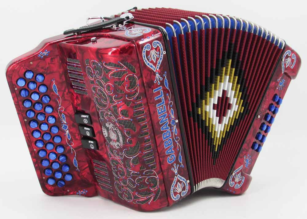 Acordeón Gabbanelli compacto y ligero de 3 registros y 34 Botones. Altamente preferido por su sonido poderoso, natural entonación y bajo peso en un diseño estilizado. Ensamblado a mano en Italia, con los materiales de la más alta calidad. Gabbanelli Modelo Compacto 103- 34 Botones – 3 registros de sonido. Disponible también con voces de bajos, mediante pedido especial. Incluye estuche, correas y garantía.