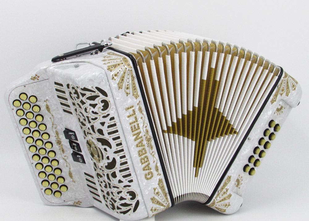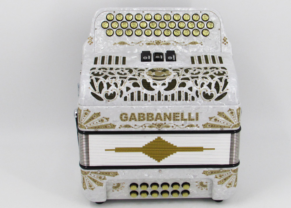 Acordeón Gabbanelli compacto y ligero de 3 registros y 34 Botones. Altamente preferido por su sonido poderoso, natural entonación y bajo peso en un diseño estilizado. Ensamblado a mano en Italia, con los materiales de la más alta calidad. Gabbanelli Modelo Compacto 103- 34 Botones – 3 registros de sonido. Disponible también con voces de bajos, mediante pedido especial. Incluye estuche, correas y garantía.