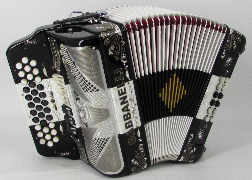 Con un diseño nunca antes visto de Acordeones Gabbanelli, nuestro acordeón 2tonos de tamaño compacto es más pequeño y ligero que nuestro modelo 2tonos regular de tamaño clásico. Este acordeón es uno de los favoritos por su versatilidad al cambiar de tonos con el sólo toque de un registro y porque está hecho a mano con la más alta calidad de materiales y ensamblado por expertos artesanos. Modelo 2 Tonos Tamaño Compacto- 34 Botones -dos tonos en uno, 3 registros de sonido cada tono. Incluye estuche, correas y garantía.