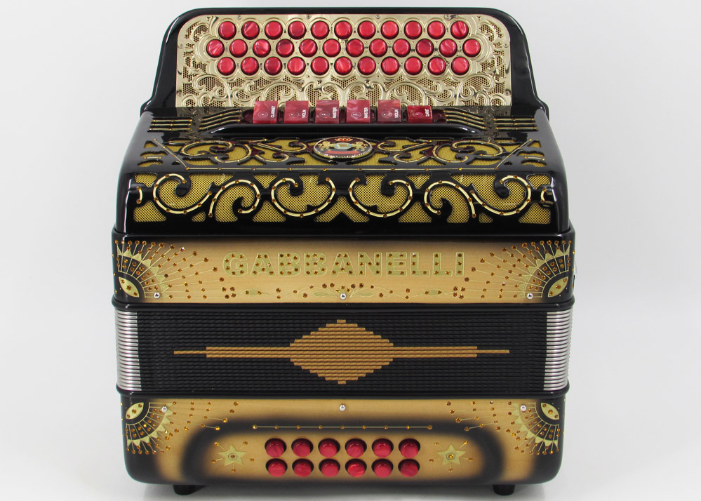 Con un diseño nunca antes visto de Acordeones Gabbanelli, nuestro acordeón 2tonos de tamaño compacto es más pequeño y ligero que nuestro modelo 2tonos regular de tamaño clásico. Este acordeón es uno de los favoritos por su versatilidad al cambiar de tonos con el sólo toque de un registro y porque está hecho a mano con la más alta calidad de materiales y ensamblado por expertos artesanos. Modelo 2 Tonos Tamaño Compacto- 34 Botones -dos tonos en uno, 3 registros de sonido cada tono. Incluye estuche, correas y garantía.
