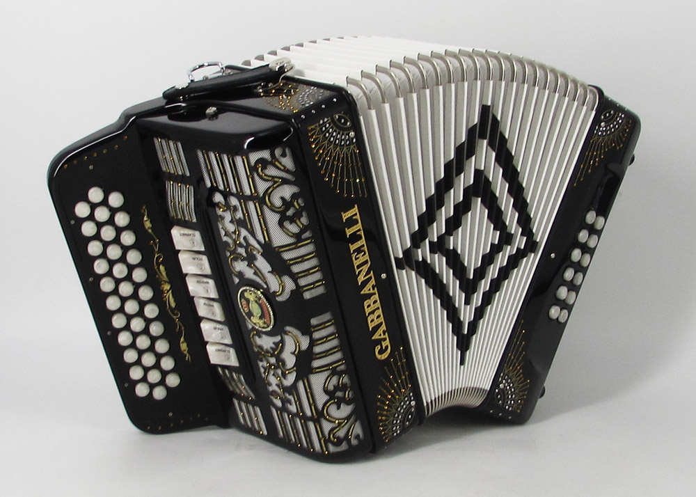 Con un diseño nunca antes visto de Acordeones Gabbanelli, nuestro acordeón 2tonos de tamaño compacto es más pequeño y ligero que nuestro modelo 2tonos regular de tamaño clásico. Este acordeón es uno de los favoritos por su versatilidad al cambiar de tonos con el sólo toque de un registro y porque está hecho a mano con la más alta calidad de materiales y ensamblado por expertos artesanos. Modelo 2 Tonos Tamaño Compacto- 34 Botones -dos tonos en uno, 3 registros de sonido cada tono. Incluye estuche, correas y garantía.