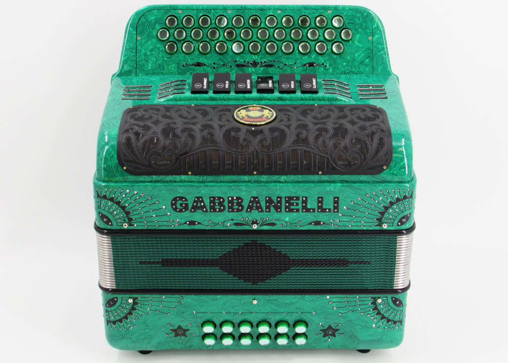 Con un diseño nunca antes visto de Acordeones Gabbanelli, nuestro acordeón 2tonos de tamaño compacto es más pequeño y ligero que nuestro modelo 2tonos regular de tamaño clásico. Este acordeón es uno de los favoritos por su versatilidad al cambiar de tonos con el sólo toque de un registro y porque está hecho a mano con la más alta calidad de materiales y ensamblado por expertos artesanos. Modelo 2 Tonos Tamaño Compacto- 34 Botones -dos tonos en uno, 3 registros de sonido cada tono. Incluye estuche, correas y garantía.
