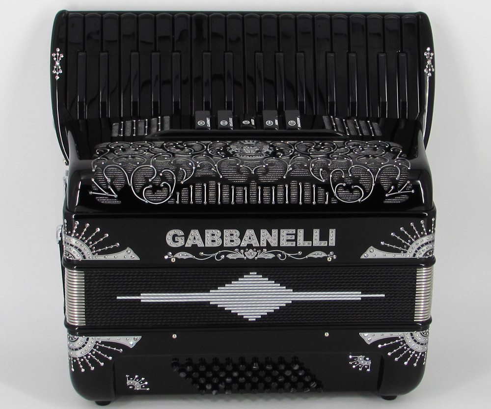 Primera tecla en sol. Este acordeón Gabbanelli contiene 34 teclas para una variada selección de notas con 5 registros para un sonido fuerte y claro. Desarrollado a mano de acuerdo a los parámetros exclusivos de Gabbanelli. Los acordeones Gabbanelli que tenemos actualmente en nuestro catálogo son los instrumentos más refinados en el mercado y son el resultado de nuestro gran conocimiento y colaboración continua desde 1961 con los mejores acordeonistas. Esta obra maestra es producto del desarrollo de Acordeones Gabbanelli a lo largo de varias décadas y de un trabajo artesanal hecho por expertos italianos que han sido seleccionados para cumplir nuestros parámetros de excelencia. Modelo 34- 34 Teclas, 50 Bajos, 5 registros de sonido, y 3 Voces de Master. Primera nota en Sol. Modelo muy popular entre músicos profesionales. Incluye estuche, correas y garantía.