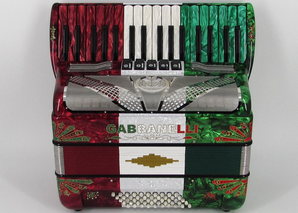 Primera tecla en sol. Este acordeón Gabbanelli contiene 34 teclas para una variada selección de notas con 5 registros para un sonido fuerte y claro. Desarrollado a mano de acuerdo a los parámetros exclusivos de Gabbanelli. Los acordeones Gabbanelli que tenemos actualmente en nuestro catálogo son los instrumentos más refinados en el mercado y son el resultado de nuestro gran conocimiento y colaboración continua desde 1961 con los mejores acordeonistas. Esta obra maestra es producto del desarrollo de Acordeones Gabbanelli a lo largo de varias décadas y de un trabajo artesanal hecho por expertos italianos que han sido seleccionados para cumplir nuestros parámetros de excelencia. Modelo 34- 34 Teclas, 50 Bajos, 5 registros de sonido, y 3 Voces de Master. Primera nota en Sol. Modelo muy popular entre músicos profesionales. Incluye estuche, correas y garantía.