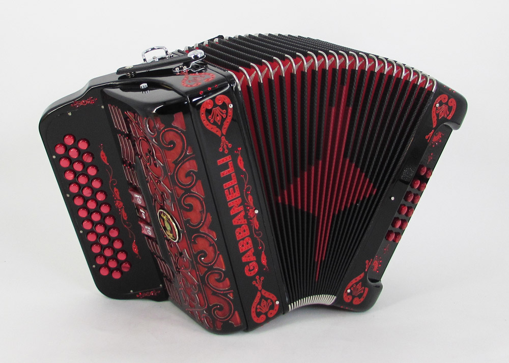 El acordeón Gabbanelli de tamaño clásico, con 3 registros de sonido y 34 Botones. También disponible mediante pedido especial con voces de bajos. Excelente sonido y entonación, ideal para todo tipo de música. Disponible siempre con los materiales de más alta calidad y hechos a mano en Italia. Gabbanelli Modelo 350-Tamaño Original – 3 registros de sonido. Incluye estuche, correas y garantía.
