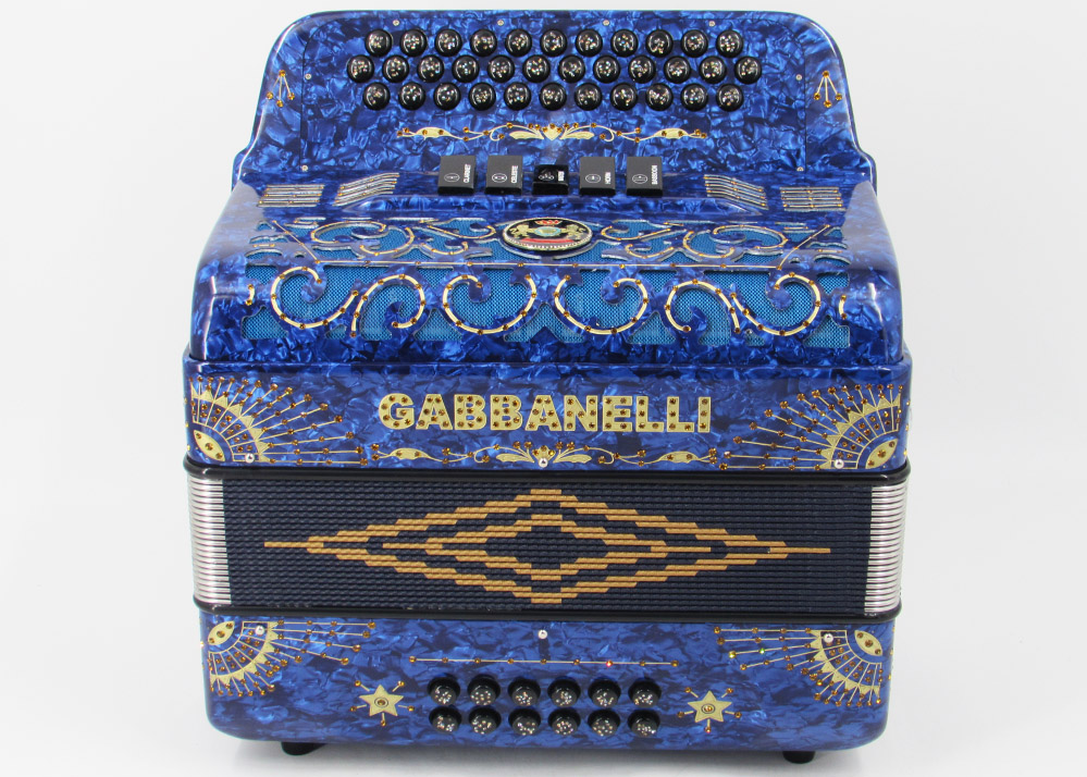 El distintivo acordeón Gabbanelli tamaño grande original de 5 registros. Produce un sonido profundo que sólo puede lograrse gracias a que es elaborado a mano, con los más elevados estándares de materiales y ensamblado con voces de la mejor calidad. Los acordeones Gabbanelli que tenemos actualmente en nuestro catálogo son los instrumentos más refinados en el mercado y son el resultado de nuestro gran conocimiento y colaboración continua desde 1961 con los mejores acordeonistas. Esta obra maestra es producto del desarrollo de Acordeones Gabbanelli a lo largo de varias décadas y de un trabajo artesanal hecho por expertos italianos que han sido seleccionados para cumplir nuestros parámetros de excelencia. El Modelo 400- 34 Botones – 5 registros incluye estuche, correas y garantía. Los bajos están disponibles bajo pedido especial y por un costo adicional.