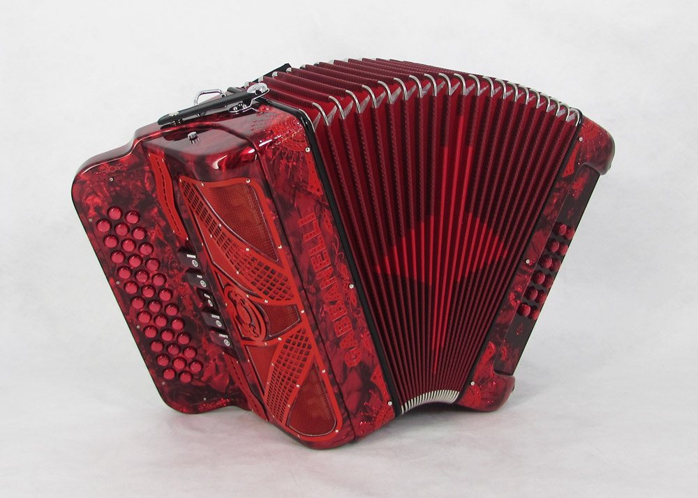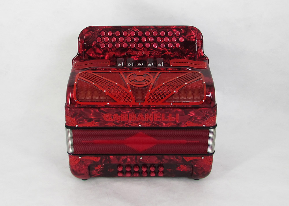 El distintivo acordeón Gabbanelli tamaño grande original de 5 registros. Produce un sonido profundo que sólo puede lograrse gracias a que es elaborado a mano, con los más elevados estándares de materiales y ensamblado con voces de la mejor calidad. Los acordeones Gabbanelli que tenemos actualmente en nuestro catálogo son los instrumentos más refinados en el mercado y son el resultado de nuestro gran conocimiento y colaboración continua desde 1961 con los mejores acordeonistas. Esta obra maestra es producto del desarrollo de Acordeones Gabbanelli a lo largo de varias décadas y de un trabajo artesanal hecho por expertos italianos que han sido seleccionados para cumplir nuestros parámetros de excelencia. El Modelo 400- 34 Botones – 5 registros incluye estuche, correas y garantía. Los bajos están disponibles bajo pedido especial y por un costo adicional.