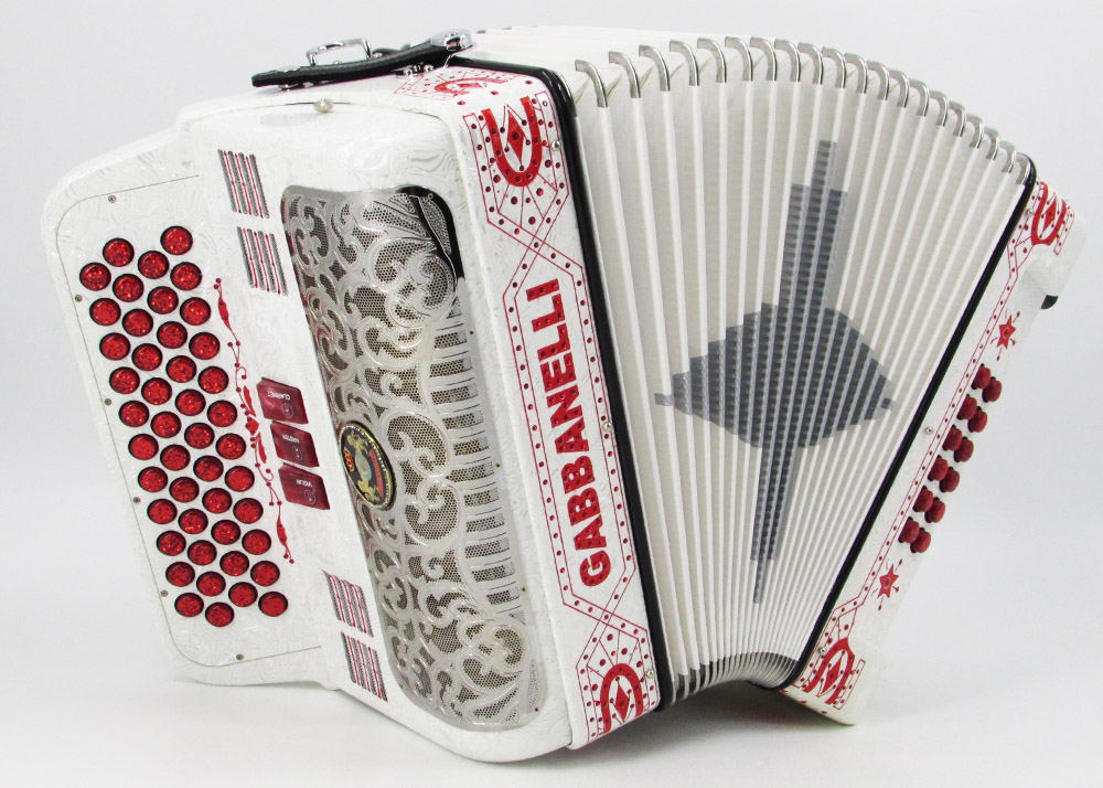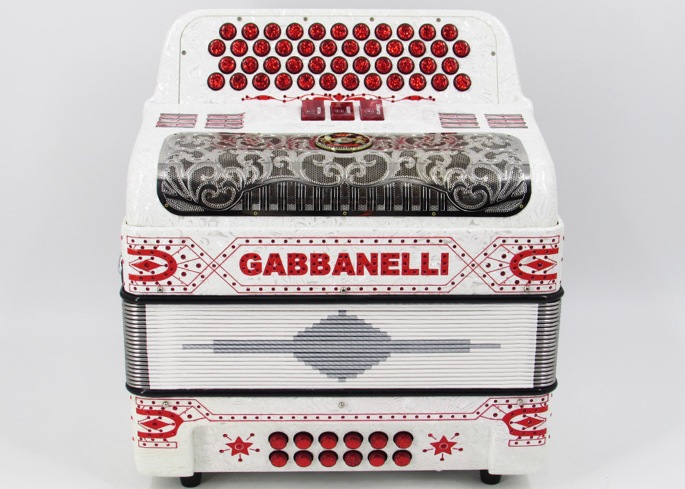 Acordeones Gabbanelli ha diseñado este modelo original de 3 registros, 4 hileras, con el fin de extender la versatilidad de 3 hileras/34 botones a 4 hileras con 12 botones más, lo que brinda un rango expandido de notas dentro del mismo tono. Los acordeones Gabbanelli son elaborados bajo las técnicas clásicas artesanales italianas, con el objetivo de producir instrumentos de la más alta calidad y cuya durabilidad pueda prolongarse para muchos años.