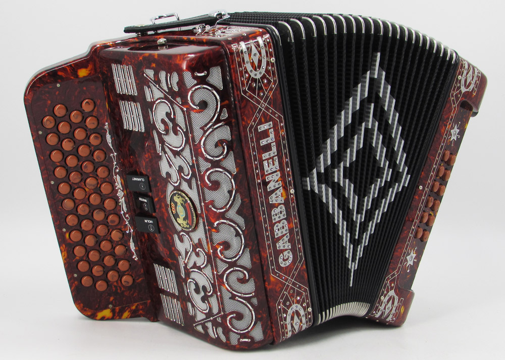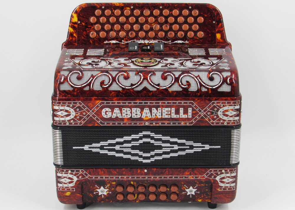Acordeones Gabbanelli ha diseñado este modelo original de 3 registros, 4 hileras, con el fin de extender la versatilidad de 3 hileras/34 botones a 4 hileras con 12 botones más, lo que brinda un rango expandido de notas dentro del mismo tono. Los acordeones Gabbanelli son elaborados bajo las técnicas clásicas artesanales italianas, con el objetivo de producir instrumentos de la más alta calidad y cuya durabilidad pueda prolongarse para muchos años.
