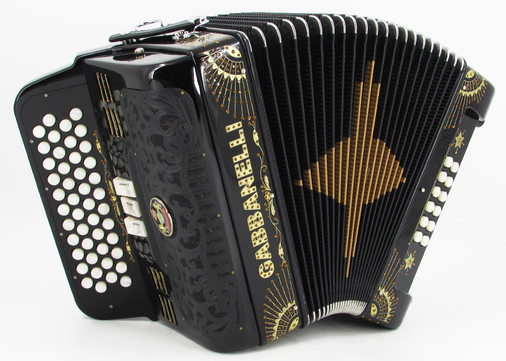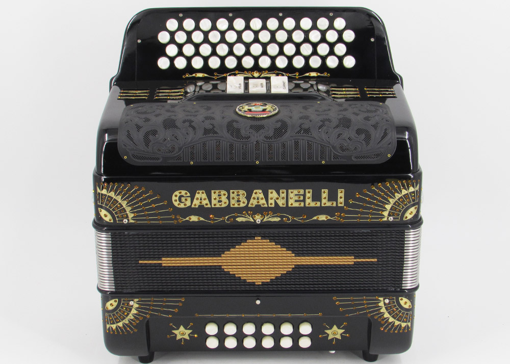Acordeones Gabbanelli ha diseñado este modelo original compacto de 3 registros, 4 hileras, con el fin de extender la versatilidad de 3 hileras/34 botones a 4 hileras con 12 botones más, lo que brinda un rango expandido de notas dentro del mismo tono. Los acordeones Gabbanelli son elaborados bajo las técnicas clásicas artesanales italianas, con el objetivo de producir instrumentos de la más alta calidad y cuya durabilidad pueda prolongarse para muchos años.