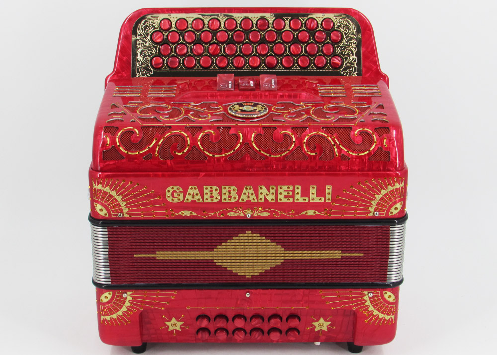 Acordeones Gabbanelli ha diseñado este modelo original de 3 registros, 4 hileras, con el fin de extender la versatilidad de 3 hileras/34 botones a 4 hileras con 12 botones más, lo que brinda un rango expandido de notas dentro del mismo tono. Los acordeones Gabbanelli son elaborados bajo las técnicas clásicas artesanales italianas, con el objetivo de producir instrumentos de la más alta calidad y cuya durabilidad pueda prolongarse para muchos años.