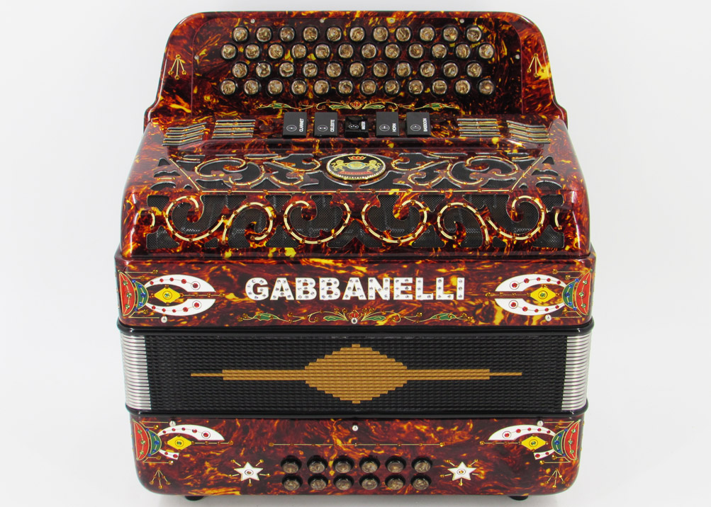 Este modelo único de Gabbanelli presenta 4 Hileras, 46 Botones y 5 Registros de sonido para dar tonos fuertes y profundos. Diseñado para quienes ejecutan 3 hileras y que deseen obtener una extensión en el rango tonal mediante una cuarta hilera de botones. Los acordeones Gabbanelli son elaborados bajo las técnicas clásicas artesanales italianas, con el objetivo de producir instrumentos de la más alta calidad y cuya durabilidad pueda prolongarse para muchos años. Modelo 465- 4 Hileras, 46 Botones, 5 Registros de sonido – 3 voces de Master. Incluye estuche, correas y garantía.