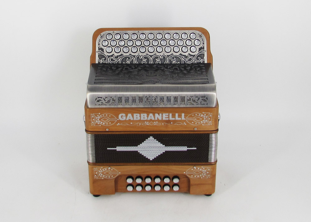 Este modelo único de Gabbanelli presenta 4 Hileras, 46 Botones y 5 Registros de sonido para dar tonos fuertes y profundos. Diseñado para quienes ejecutan 3 hileras y que deseen obtener una extensión en el rango tonal mediante una cuarta hilera de botones. Los acordeones Gabbanelli son elaborados bajo las técnicas clásicas artesanales italianas, con el objetivo de producir instrumentos de la más alta calidad y cuya durabilidad pueda prolongarse para muchos años. Modelo 465- 4 Hileras, 46 Botones, 5 Registros de sonido – 3 voces de Master. Incluye estuche, correas y garantía.