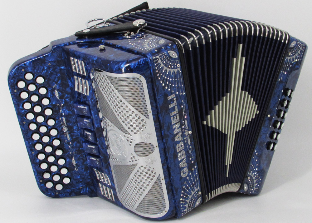 El distintivo acordeón Gabbanelli tamaño super compacto de 5 registros. Produce un sonido profundo que sólo puede lograrse gracias a que es elaborado a mano, con los más elevados estándares de materiales y ensamblado con voces de la mejor calidad. Los acordeones Gabbanelli que tenemos actualmente en nuestro catálogo son los instrumentos más refinados en el mercado y son el resultado de nuestro gran conocimiento y colaboración continua desde 1961 con los mejores acordeonistas. Esta obra maestra es producto del desarrollo de Acordeones Gabbanelli a lo largo de varias décadas y de un trabajo artesanal hecho por expertos italianos que han sido seleccionados para cumplir nuestros parámetros de excelencia. El Modelo 400- 34 Botones – 5 registros incluye estuche, correas y garantía. Los bajos están disponibles bajo pedido especial y por un costo adicional.