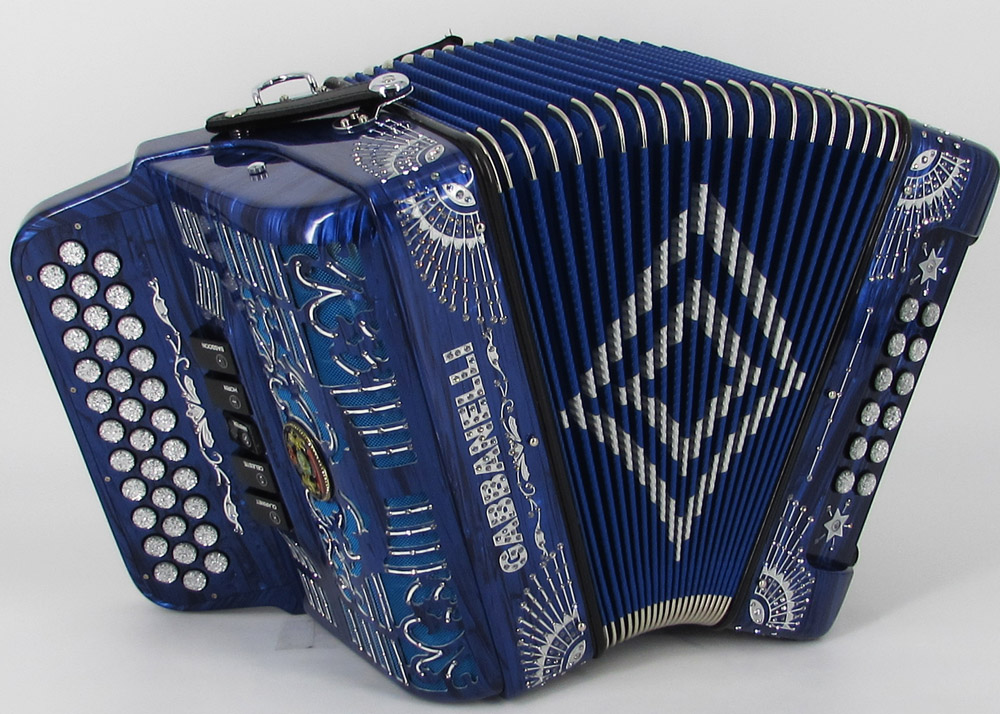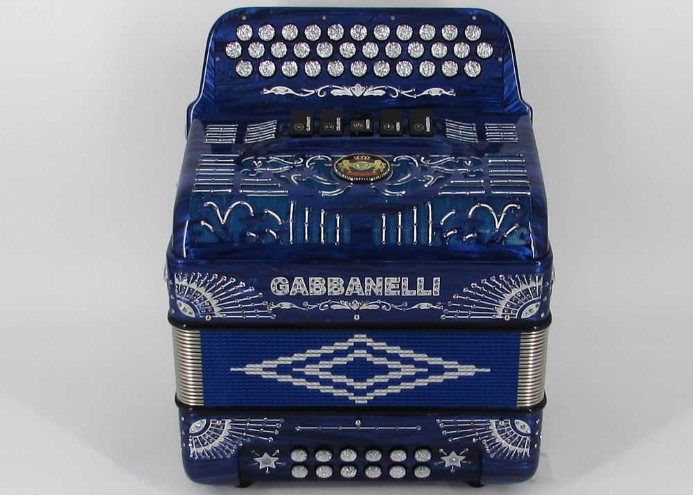 El distintivo acordeón Gabbanelli tamaño super compacto de 5 registros. Produce un sonido profundo que sólo puede lograrse gracias a que es elaborado a mano, con los más elevados estándares de materiales y ensamblado con voces de la mejor calidad. Los acordeones Gabbanelli que tenemos actualmente en nuestro catálogo son los instrumentos más refinados en el mercado y son el resultado de nuestro gran conocimiento y colaboración continua desde 1961 con los mejores acordeonistas. Esta obra maestra es producto del desarrollo de Acordeones Gabbanelli a lo largo de varias décadas y de un trabajo artesanal hecho por expertos italianos que han sido seleccionados para cumplir nuestros parámetros de excelencia. El Modelo 400- 34 Botones – 5 registros incluye estuche, correas y garantía. Los bajos están disponibles bajo pedido especial y por un costo adicional.